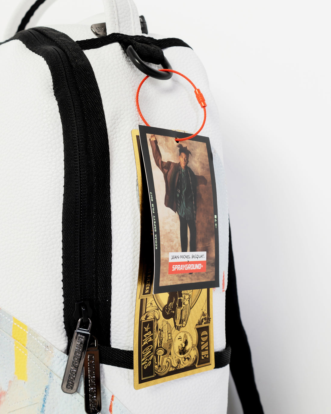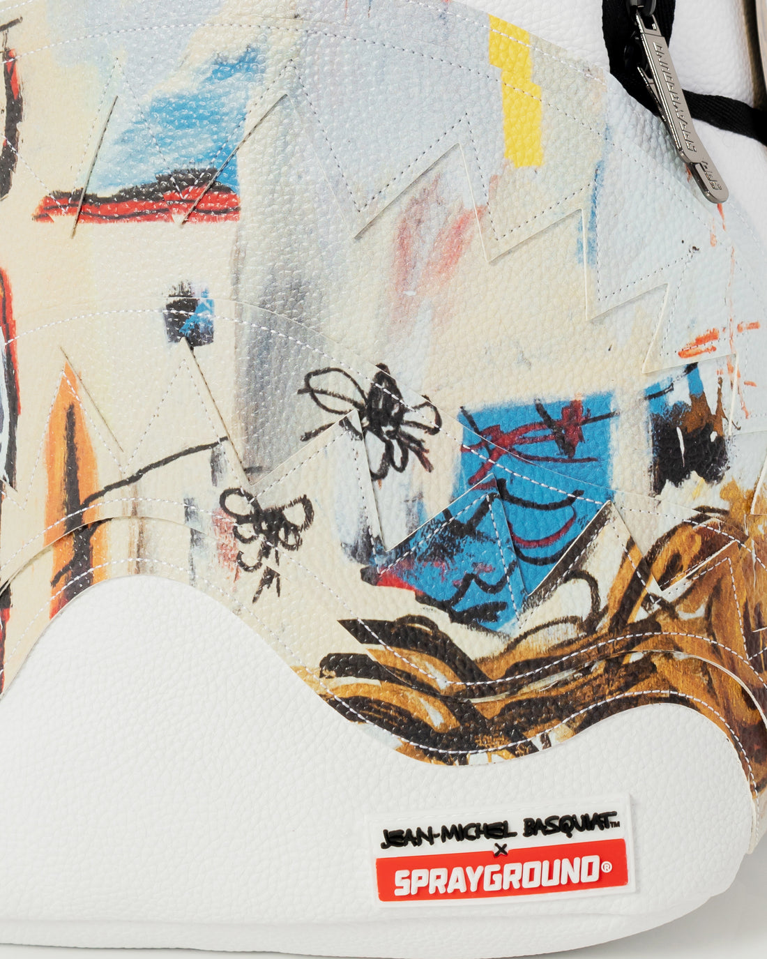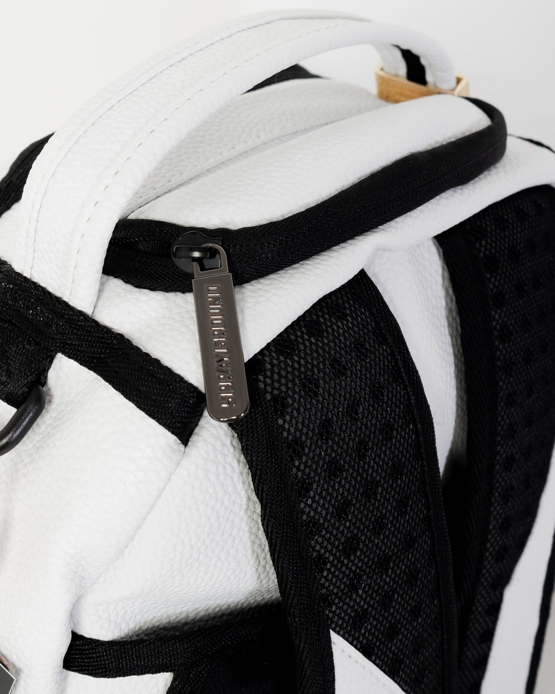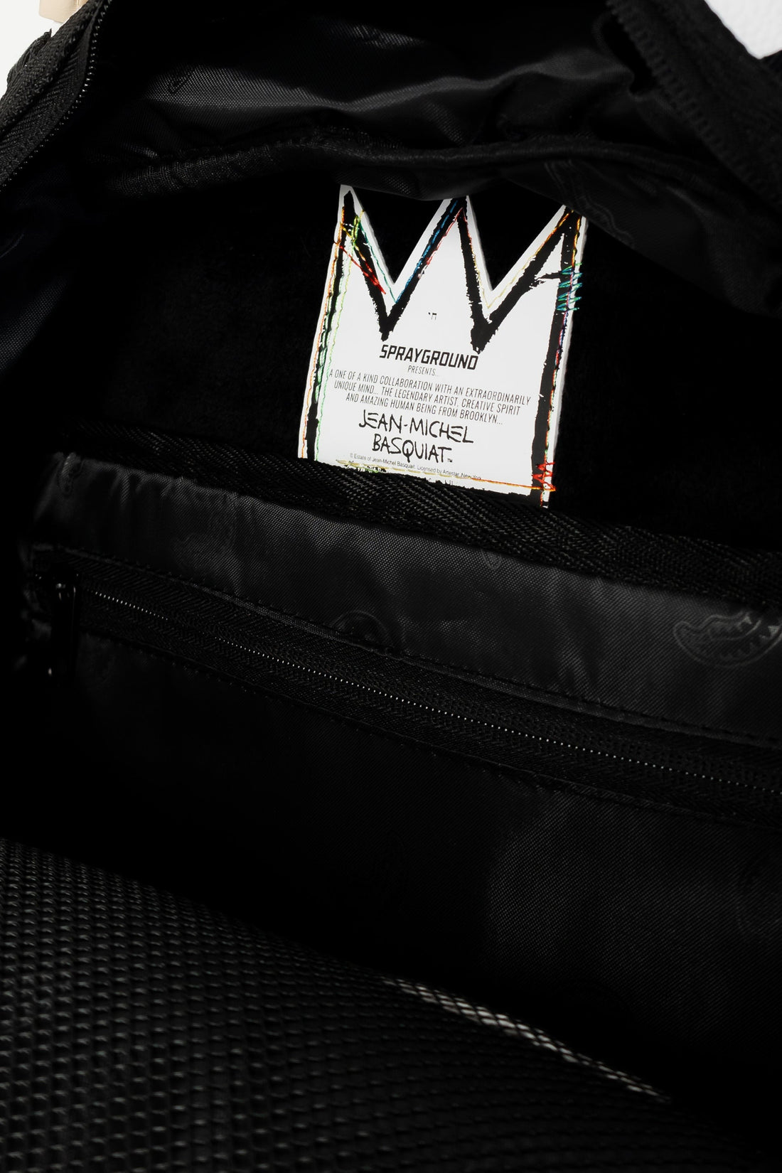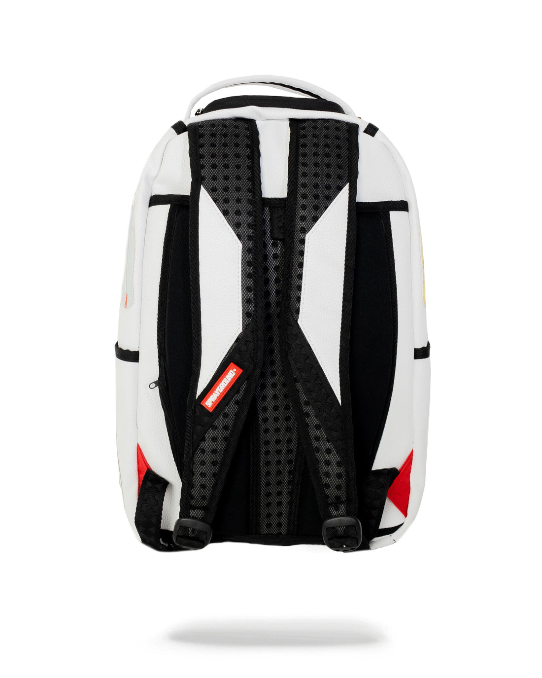 Dimensions: 18" x 6" x 11.5" • Front zipper pocket • Side pockets • Zippered Stash pocket • Separate velour sunglass compartment • Ergonomic mesh back padding • Adjustable Straps for custom sizing • Gold zippers with metal hardware • Metal "Sprayground Authentic" badge • Slide through back sleeve connects to carry-on luggage to free your hands