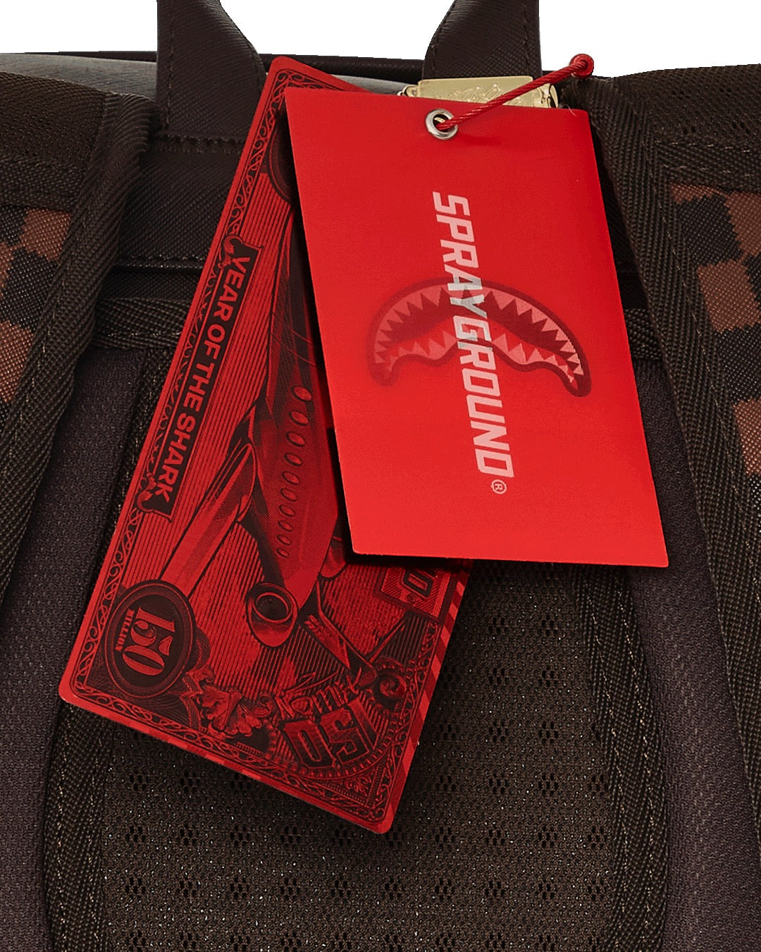 - Opening with upper flap with adjustable enamelled metal buckles and closure with coulisse.
