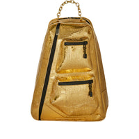 TOP BAG: 17H" X 11W" X 6"D, CROSSBODY: 5.25" H X 10 W X 5.5" D HEIGHT TOGETHER: 22.5" • Embossed PVC leather, bottom piece is removable/convertible crossbody, top bag has 4 exterior pockets, 1 interior mesh pocket - crossbody has magnetic snap closures and 1 interior zip pocket.