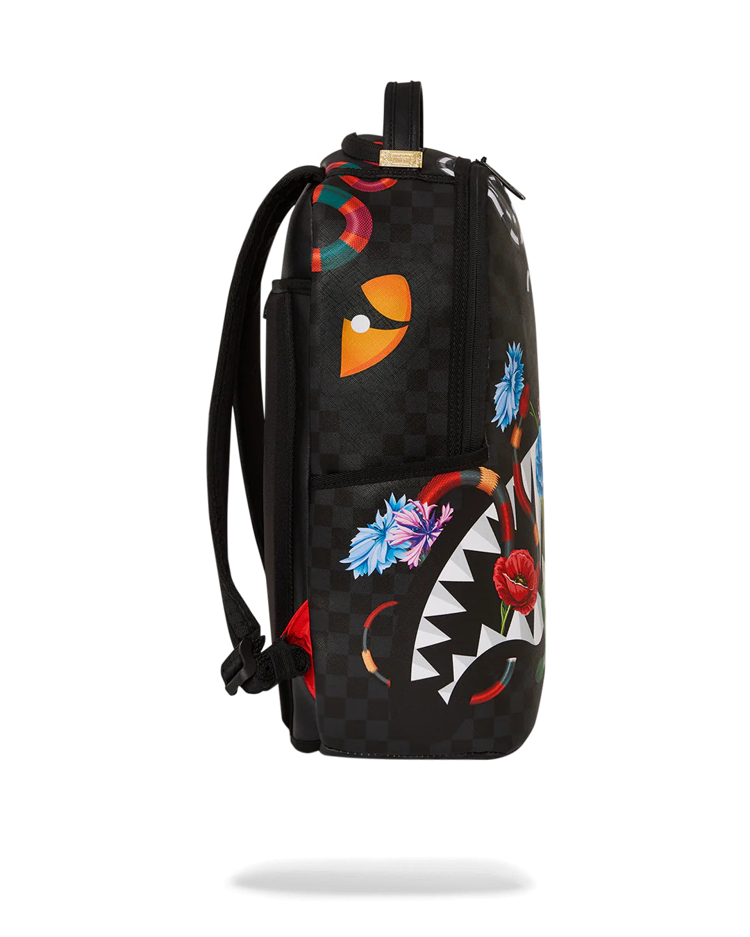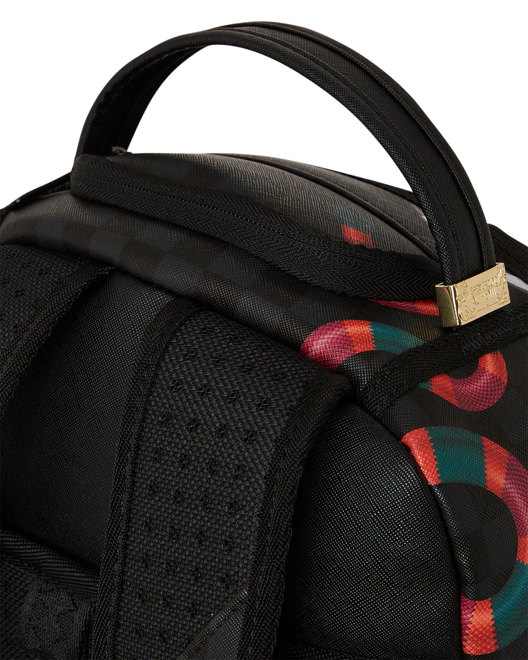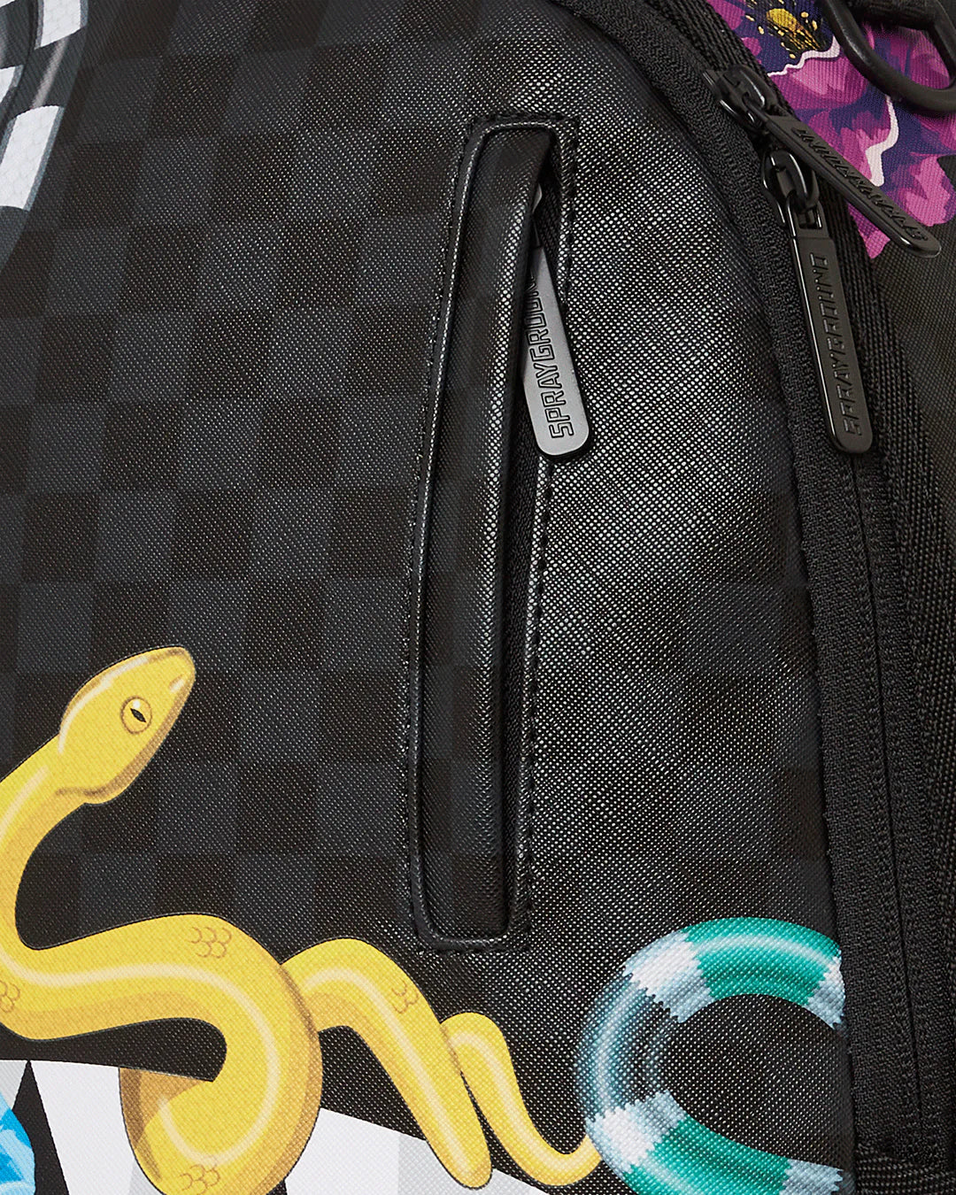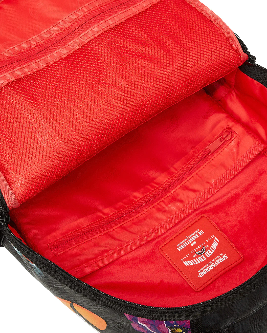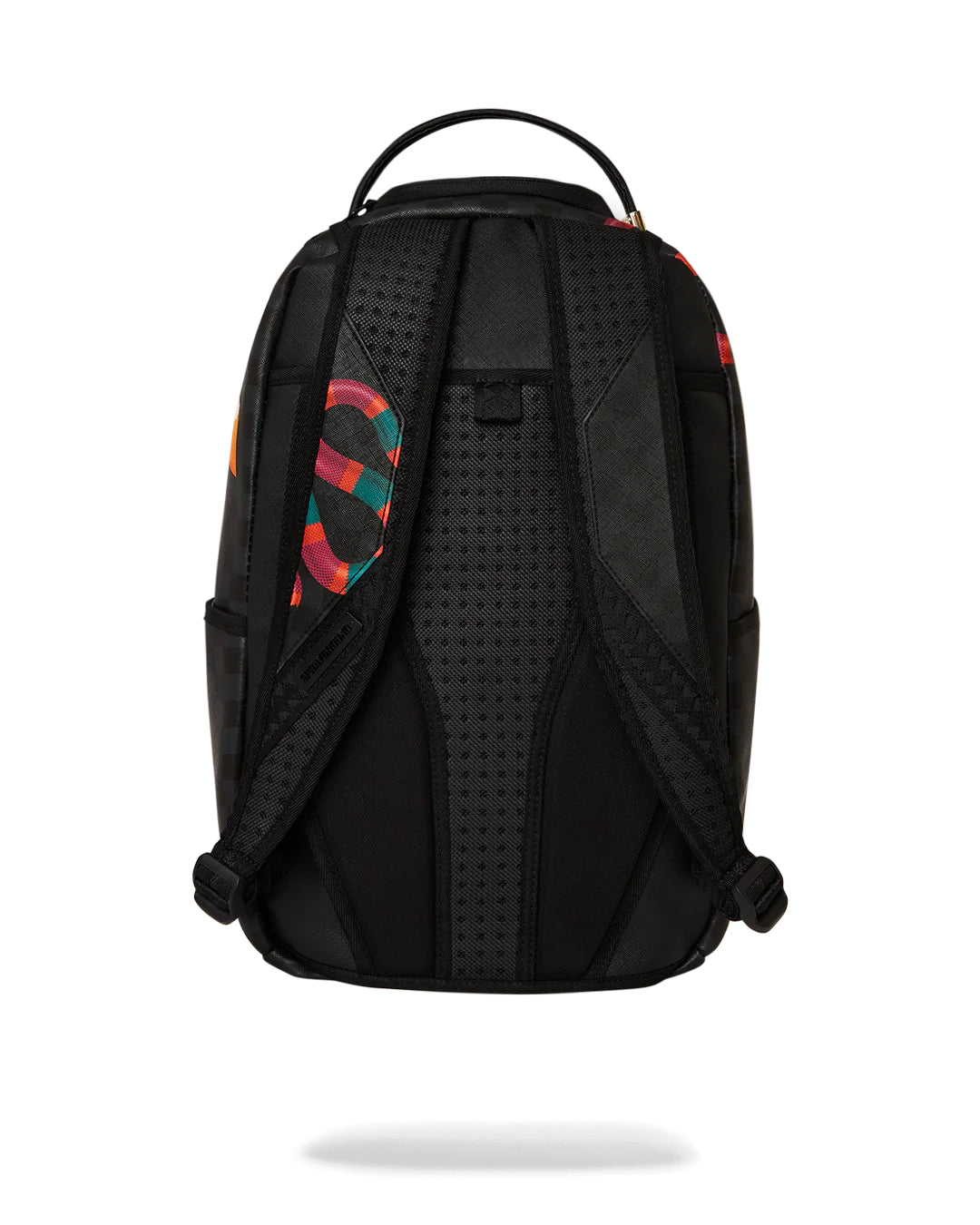 Dimensiones: 46cm x 15cm x 29cm - Bolsillo frontal con cremallera - Bolsillos laterales - Bolsillo con cremallera Stash - Compartimento separado para gafas de sol de terciopelo - Acolchado trasero de malla ergonómico - Correas ajustables para personalizar el tamaño - Cremalleras doradas con herrajes metálicos - Insignia metálica "Sprayground Authentic" - La funda trasera deslizante se conecta al equipaje de mano para liberar las manos