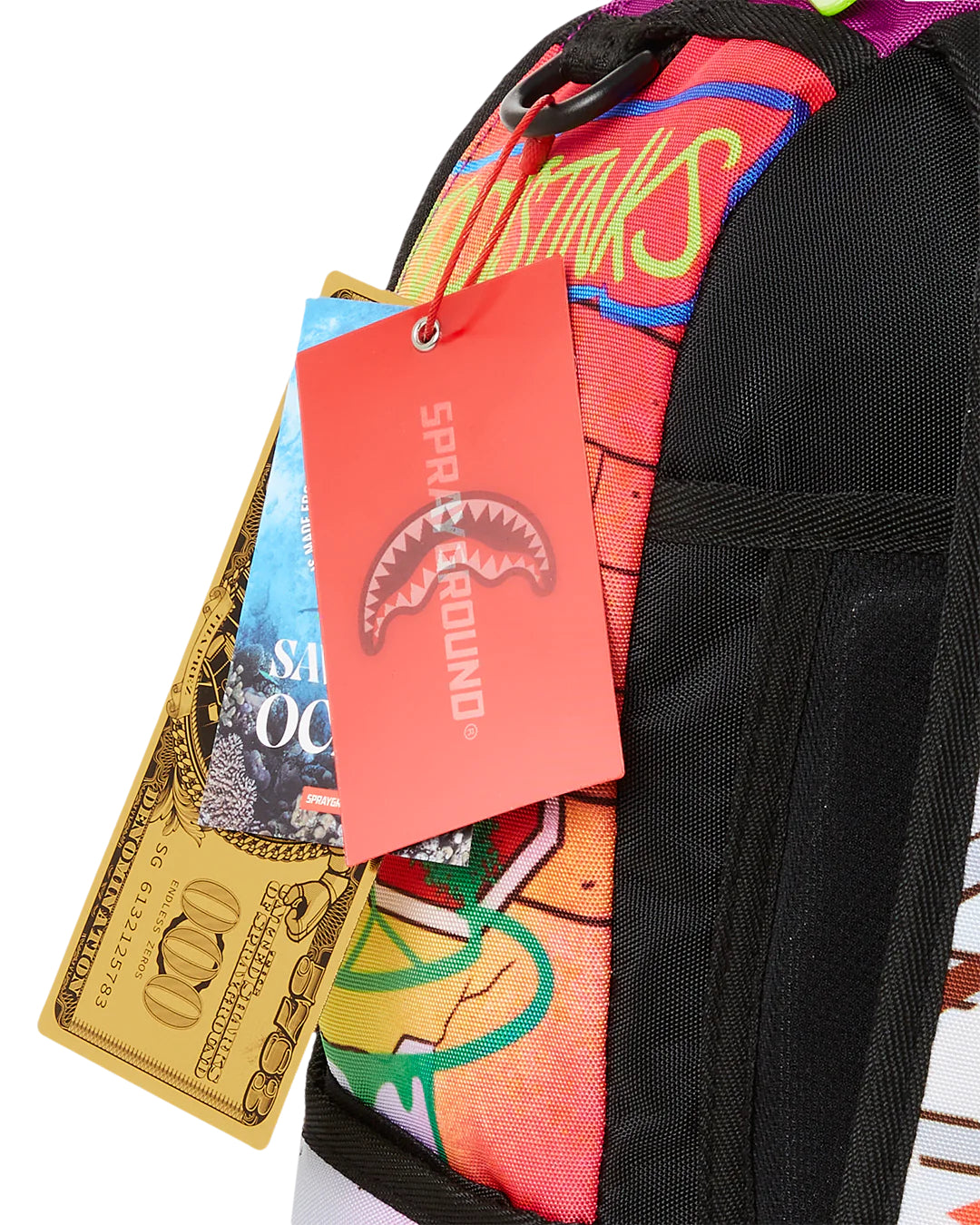 Dimensiones: 46cm x 15cm x 29cm - Bolsillo frontal con cremallera - Bolsillos laterales - Bolsillo con cremallera Stash - Compartimento separado para gafas de sol de terciopelo - Acolchado trasero de malla ergonómico - Correas ajustables para personalizar el tamaño - Cremalleras doradas con herrajes metálicos - Insignia metálica "Sprayground Authentic" - La funda trasera deslizante se conecta al equipaje de mano para liberar las manos