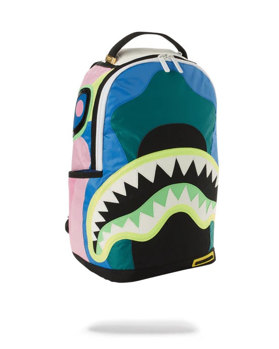 Dimensions : 18" x 6" x 11.5" - Poche frontale à fermeture éclair - Poches latérales - Pochette de rangement à fermeture éclair - Compartiment séparé en velours pour lunettes de soleil - Rembourrage dorsal ergonomique en maille - Sangles réglables pour une taille personnalisée - Fermetures éclair chromées néon avec matériel métallique - Badge métallique "Sprayground Authentic" - La pochette arrière coulissante se connecte aux bagages à main pour vous libérer les mains.