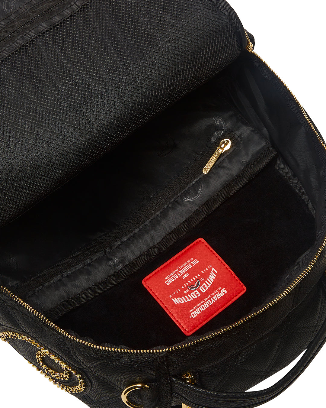Dimensions : 46cm x 15cm x 29cm • Poche frontale avec fermeture à glissière • Poches latérales • Poche cachée avec fermeture à glissière • Compartiment séparé en velours pour lunettes de soleil • Rembourrage arrière ergonomique en maille • Sangles réglables pour tailles personnalisées • Charnières rouges avec élément en métal • Badge "Sprayground Authentic" en métal • La manche arrière se connecte à votre bagage à main pour libérer vos mains