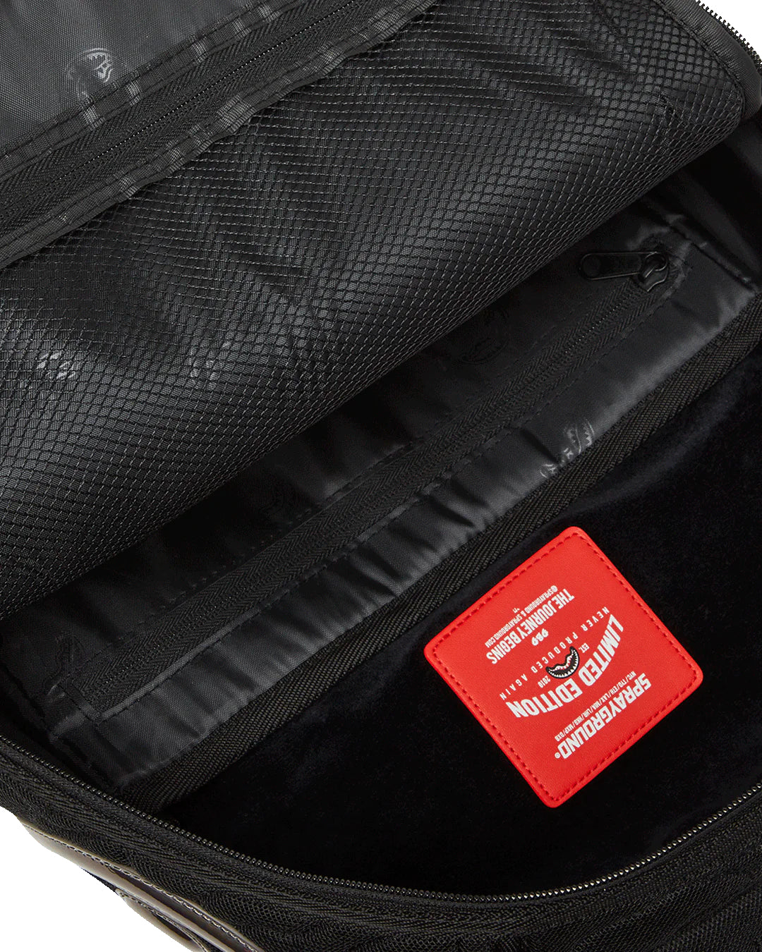 Dimensions : 46cm x 15cm x 29cm - Poche frontale avec fermeture éclair - Poches latérales - Poche cachée avec fermeture éclair - Rembourrage ergonomique du dos en filet - Sangles réglables pour des tailles personnalisées - Fermetures éclair en nylon avec matériel métallique - Pochette métallique "Sprayground Authentic" - Pochette arrière coulissante qui s'attache au bagage à main pour vous libérer les mains