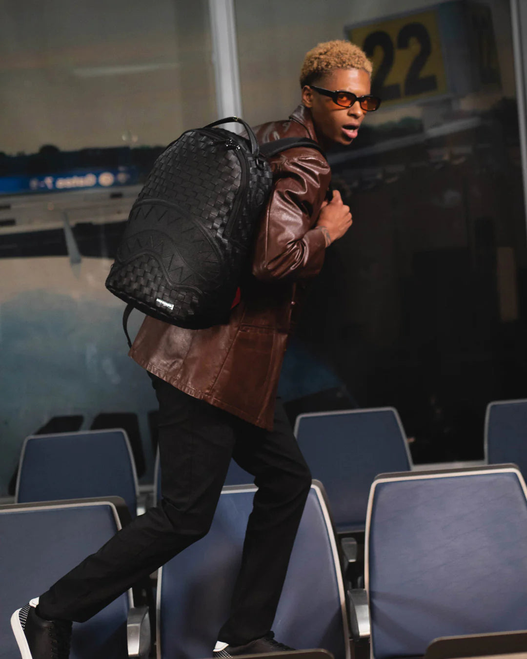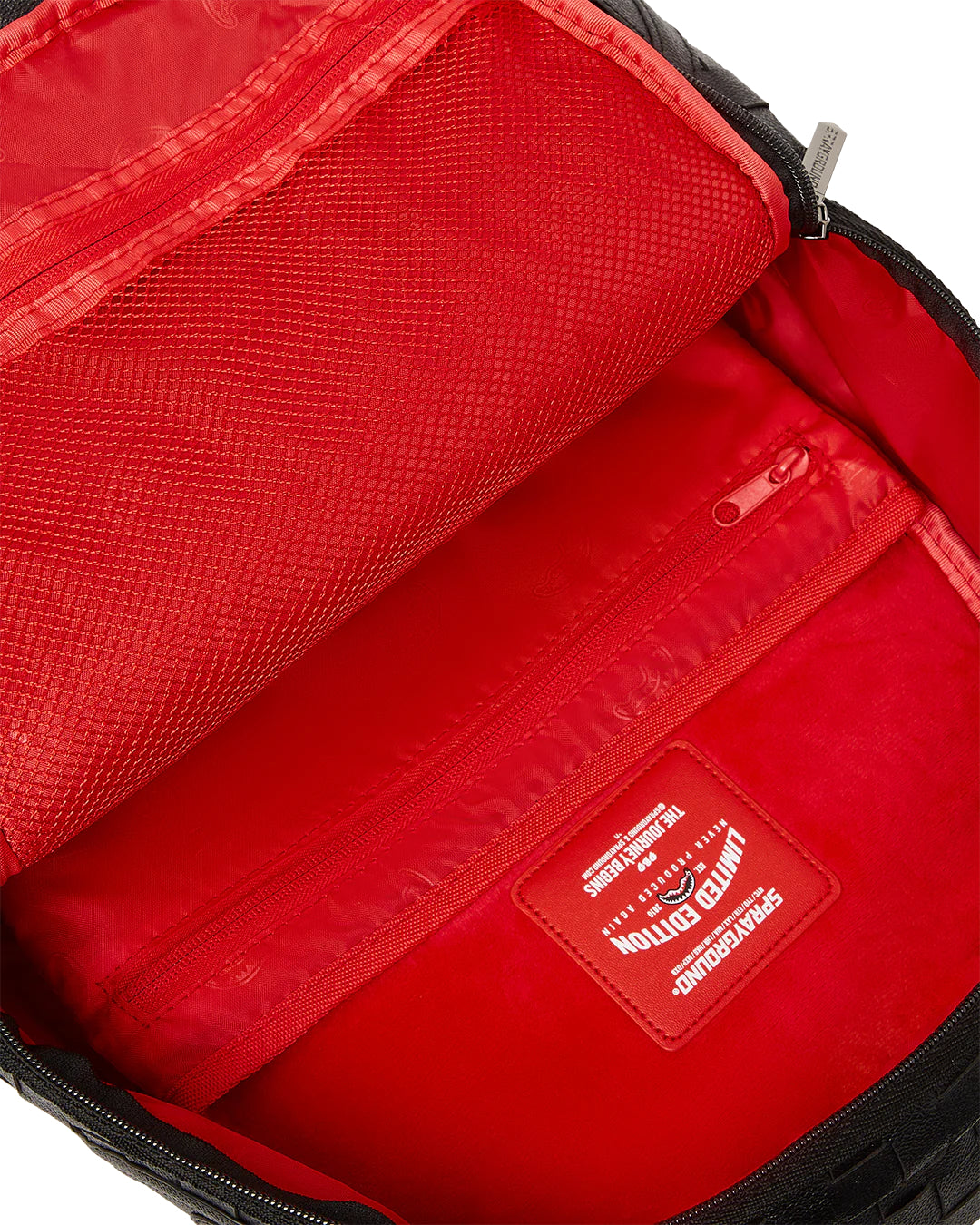 Dimensions : 46cm x 15cm x 29cm • Poche frontale avec fermeture à glissière • Poches latérales • Poche cachée avec fermeture à glissière • Compartiment séparé en velours pour lunettes de soleil • Rembourrage arrière ergonomique en maille • Sangles réglables pour tailles personnalisées • Charnières rouges avec élément en métal • Badge "Sprayground Authentic" en métal • La manche arrière se connecte à votre bagage à main pour libérer vos mains