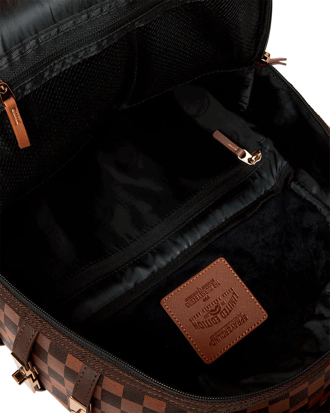 Dimensions : 18" x 6" x 11.5" - Poche frontale zippée - Poches latérales - Poche de rangement zippée - Compartiment séparé pour lunettes de soleil en velours - Rembourrage ergonomique du dos en filet - Sangles réglables pour une taille personnalisée - Fermetures à glissière dorées avec matériel métallique - Badge métallique "Sprayground Authentic" - La pochette arrière à glissière se connecte au bagage à main pour libérer vos mains