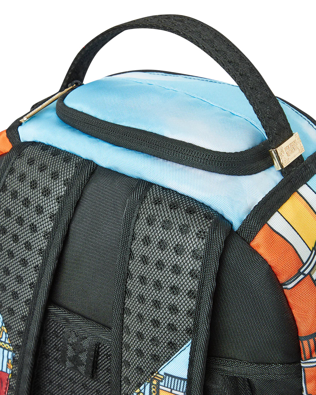 Dimensions : 46cm x 15cm x 29cm • Poche frontale avec fermeture à glissière • Poches latérales • Poche cachée avec fermeture à glissière • Compartiment séparé en velours pour lunettes de soleil • Rembourrage arrière ergonomique en maille • Sangles réglables pour tailles personnalisées • Charnières rouges avec élément en métal • Badge "Sprayground Authentic" en métal • La manche arrière se connecte à votre bagage à main pour libérer vos mains