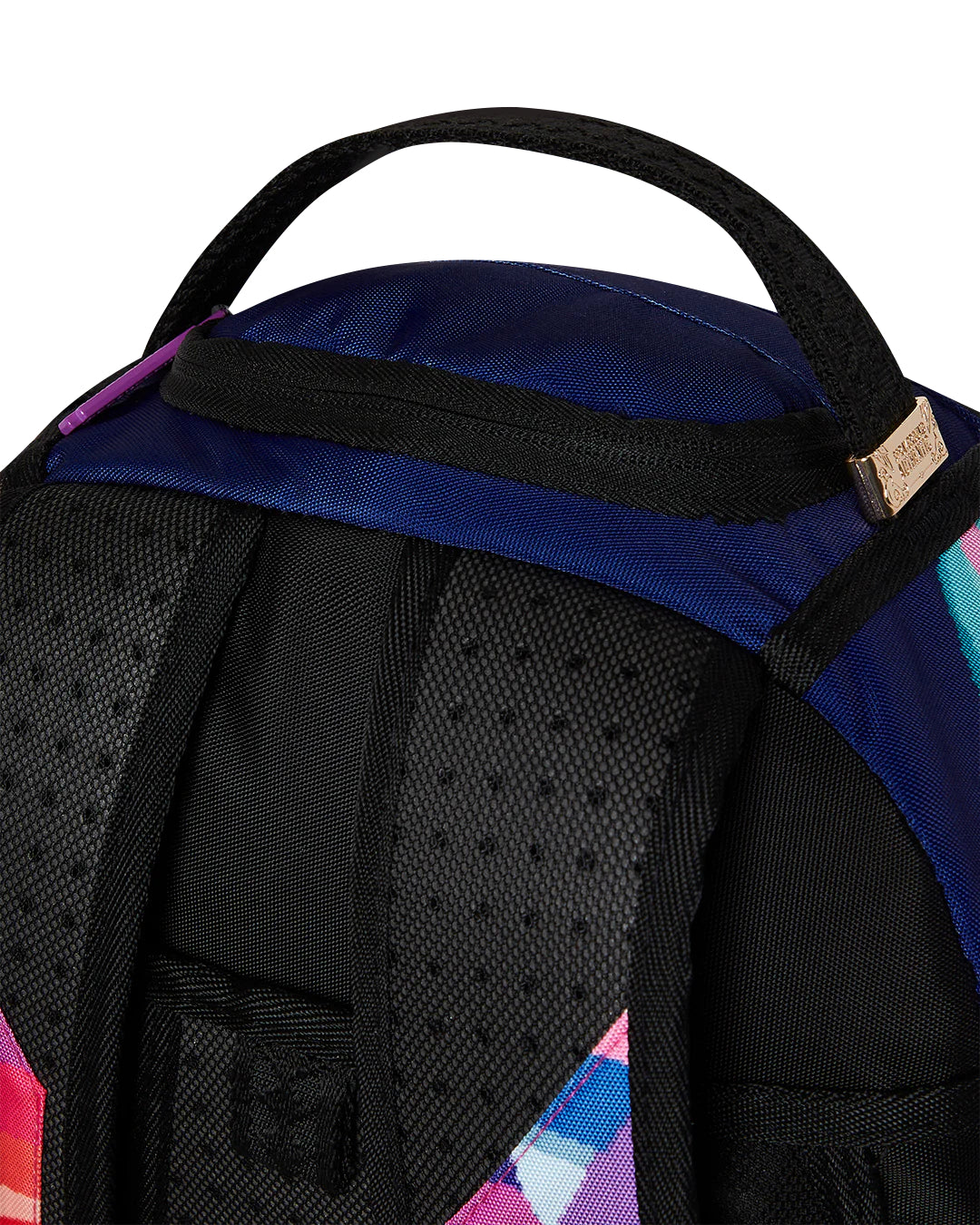 Dimensions : 18«  x 6 » x 11.5 » - Poche frontale zippée - Poches latérales - Poche de rangement zippée - Compartiment séparé pour lunettes de soleil en velours - Rembourrage ergonomique du dos en filet - Sangles réglables pour une taille personnalisée - Fermetures à glissière dorées avec matériel métallique - Badge métallique “Sprayground Authentic” - La pochette arrière à glissière se connecte au bagage à main pour vous libérer les mains.