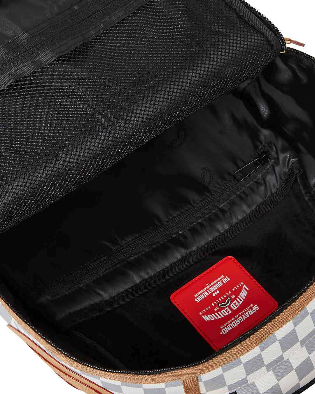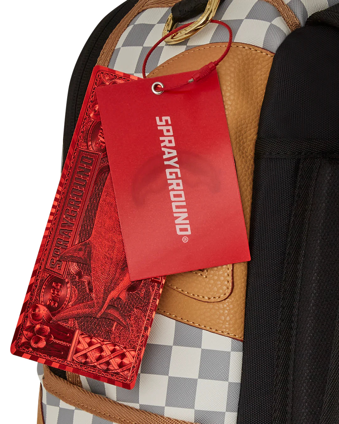 Dimensions : 18" x 6" x 11,5" • Poche avant zippée • Poches latérales • Poche de rangement zippée • Compartiment séparé pour lunettes de soleil en velours • Rembourrage dorsal ergonomique en maille • Sangles réglables pour un dimensionnement personnalisé • Fermetures éclair dorées avec quincaillerie métallique • Badge métallique « Sprayground Authentic » • La pochette arrière coulissante se connecte au bagage à main pour libérer vos mains